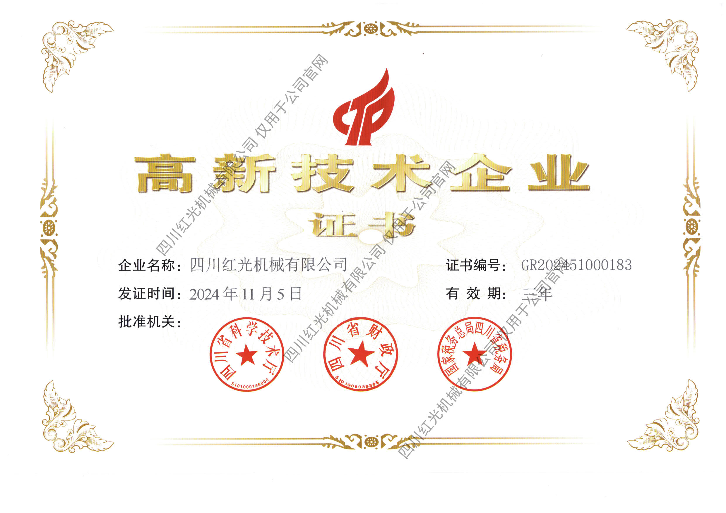 高新技术企业证书